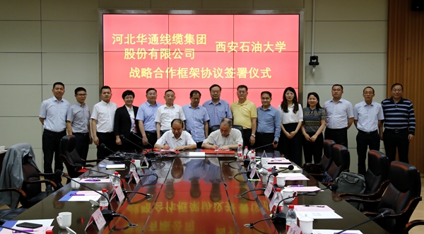陳軍斌副校長與張文勇董事長分別代表西安石油大學(xué)和河北華通線纜集團(tuán)股份有限公司簽署了校企戰(zhàn)略合作框架協(xié)議。協(xié)議中約定雙方今后將在科研合作與技術(shù)交流、人才培養(yǎng)等幾個(gè)方面開展全面合作。
