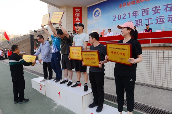 雷西合副書記為榮獲本屆運動會團體總分前六名的代表隊頒獎,分別是:機關七代表隊與體育系代表隊(并列)、石油工程學院代表隊、經濟管理學院代表隊、人文學院代表隊、地球科學與工程學院代表隊、機關二代表隊。