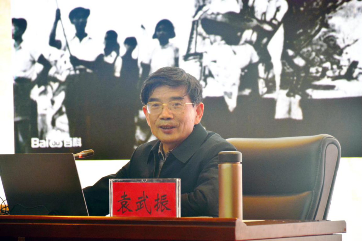 袁武振教授從“為什么學(xué)?學(xué)什么?怎樣學(xué)?”出發(fā),圍繞深入學(xué)習(xí)領(lǐng)會習(xí)近平總書記關(guān)于黨的歷史的重要論述,闡釋了黨史學(xué)習(xí)教育的重大意義。隨后,袁教授從中共黨組織在陜西的建立、陜西黨組織在革命洪流中的發(fā)展成長、陜西黨組織掀起土地革命風(fēng)暴、全民族抗戰(zhàn)中的陜西黨組織、奪取新民主主義革命的全面勝利、黨領(lǐng)導(dǎo)陜西新民主主義革命勝利的基本經(jīng)驗(yàn)等六個(gè)方面,通過詳實(shí)的史料、精辟的語言,生動再現(xiàn)、系統(tǒng)梳理了陜西新民主主義革命時(shí)期黨的歷史,為在座的師生深刻認(rèn)識黨的百年奮斗史開闊了視野,廓清了迷霧,提供了借鑒。袁教授的報(bào)告主題鮮明、立意深刻,使大家進(jìn)一步明確了學(xué)習(xí)黨史的目的,堅(jiān)定了聽黨話、跟黨走的信念和決心。