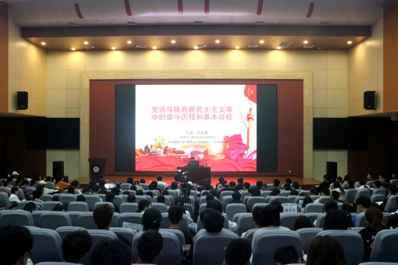 4月29日,黨史學(xué)習(xí)教育省委宣講團(tuán)成員、西安郵電大學(xué)馬克思主義學(xué)院院長袁武振教授,在鄠邑校區(qū)弘石學(xué)術(shù)報(bào)告廳為我校第十三期“青馬班”學(xué)員作題為《黨領(lǐng)導(dǎo)陜西新民主主義革命的奮斗歷程和基本經(jīng)驗(yàn)》的專題報(bào)告。校團(tuán)委全體成員、“青馬班”學(xué)員共計(jì)400余人參加了報(bào)告會。