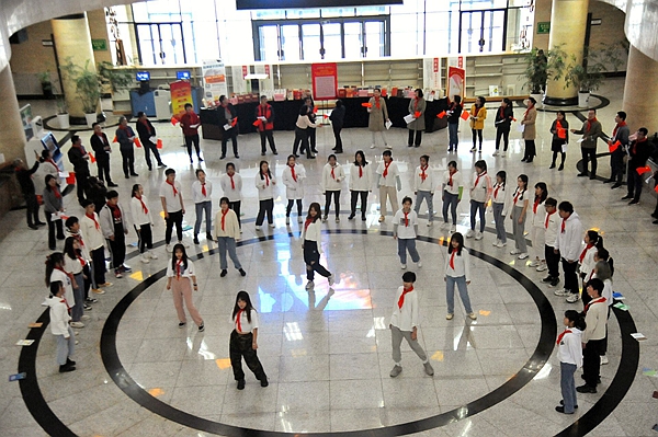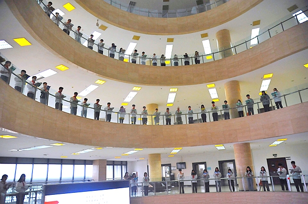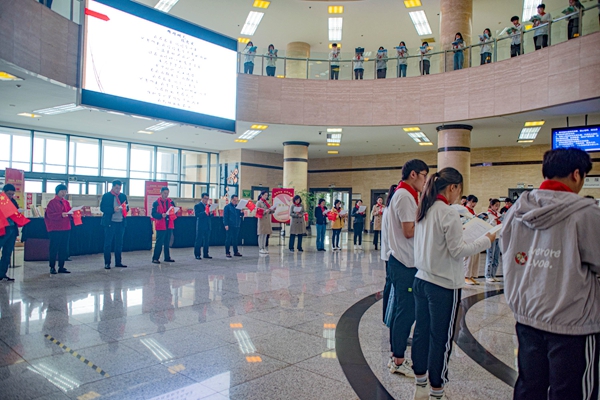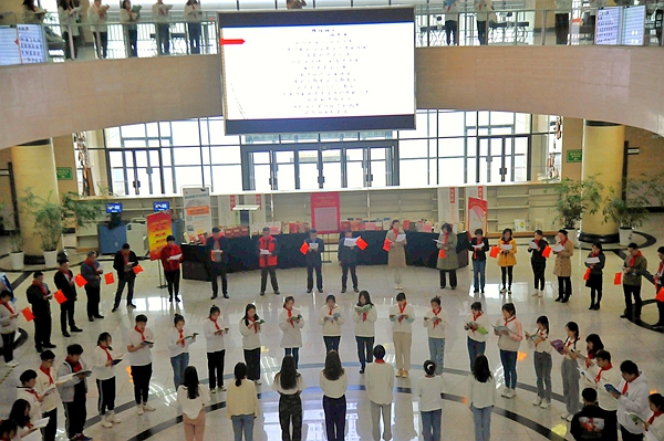421日上午,在鄠邑校區(qū)墨香濃郁、書(shū)香四溢的圖書(shū)館大廳,以“銘記光輝歷史,創(chuàng)造美好未來(lái)”為主題的圖書(shū)館2021年校園文化活動(dòng)在師生共同參與的快閃活動(dòng)中拉開(kāi)了帷幕。李華副校長(zhǎng),各職能部門負(fù)責(zé)人、各院系副書(shū)記,100余名同學(xué)們一起參加了啟動(dòng)儀式。
