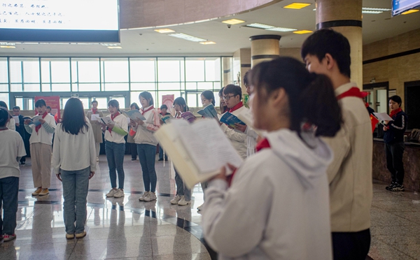200名師生戴著紅領(lǐng)巾一起朗誦了《為學(xué)之道》、《沁園春·長(zhǎng)沙》、《你是人間四月天》和《輝煌明天》四首詩(shī)歌?!稙閷W(xué)之道》強(qiáng)調(diào)了博學(xué)、審問(wèn)、慎思、明辨和篤行,同學(xué)們明白了學(xué)習(xí)重在方法,貴在堅(jiān)持。《沁園春·長(zhǎng)沙》抒發(fā)了革命青年對(duì)國(guó)家命運(yùn)的感慨,蔑視反動(dòng)統(tǒng)治者、改造舊中國(guó)的豪情壯志,同學(xué)們感受到以天下為己任的家國(guó)情懷?!赌闶侨碎g四月天》以景喻情,激發(fā)了同學(xué)們對(duì)生活的期待。《輝煌明天》表達(dá)了學(xué)校支持國(guó)家發(fā)展、培育青年學(xué)子獻(xiàn)身石油的情懷和學(xué)校未來(lái)發(fā)展的美好愿望。