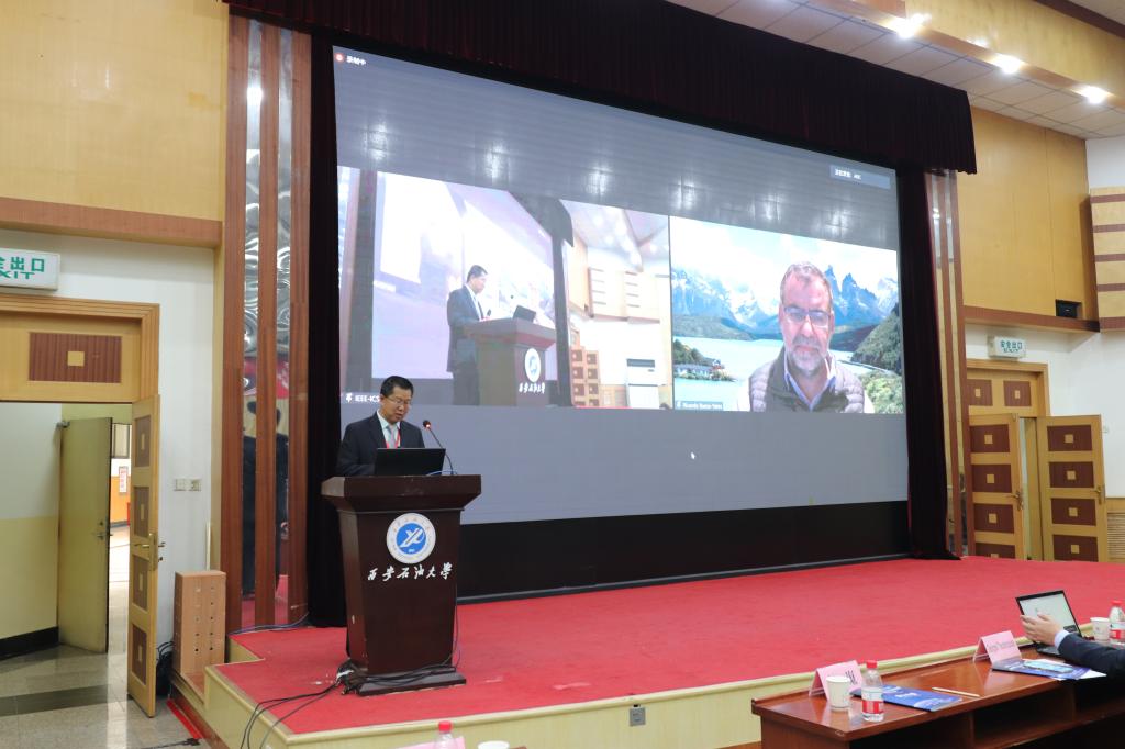 會議采取線上+線下同步模式。大會主席、校長李天太教授代表主辦方用英文致辭。他向各位參會代表表示歡迎,并介紹了學校的發(fā)展歷史和基本情況,著重介紹了學校近年來在人才培養(yǎng)、科學研究、社會服務、國際交流合作等方面取得的成績。他談到,此次學術會議為本領域的學者、專家搭建了交流的平臺,希望大家共同推動學術發(fā)展和技術進步。
