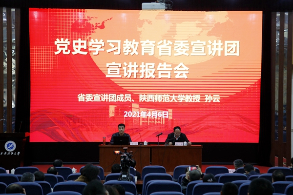 4月6日上午,黨史學習教育省委宣講團在我校雁塔校區(qū)舉行宣講報告會。省委宣講團成員、陜西師范大學教授孫云作宣講報告。報告會由校黨委書記賽云秀主持。校領(lǐng)導(dǎo),全體處級干部、教師代表、師生代表參加了報告會。