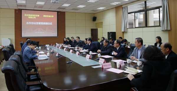 會議期間,李天太校長與鄭勇董事長分別代表西安石油大學和蘇州博睿測控設(shè)備有限公司簽署了合作協(xié)議,協(xié)議中約定雙方在閥門控制用智能型執(zhí)行器、工業(yè)過程自動化測控設(shè)備研發(fā)等領(lǐng)域開展全面合作;蘇州博睿測控設(shè)備有限公司設(shè)立專項資金,用于雙方共建工程技術(shù)研究中心,開展電氣工程技術(shù)領(lǐng)域相關(guān)課題研究、在學校設(shè)立“博??萍紕?chuàng)新專項基金”“博睿卓越人才獎”。