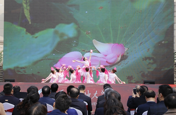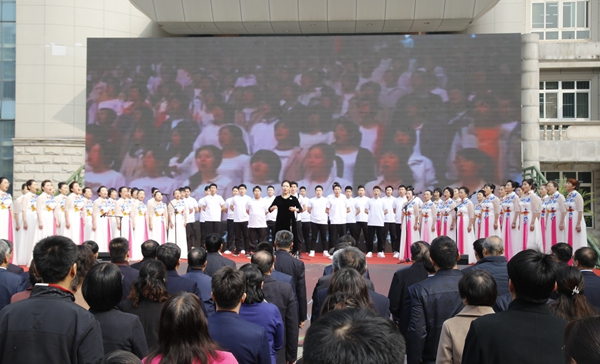 隨后,師生進(jìn)行了精彩的文藝表演。校團(tuán)委、大學(xué)生藝術(shù)團(tuán)表演了古典舞《荷風(fēng)盛世》、街舞《舞動(dòng)青春》;音樂系師生表演了歌曲聯(lián)唱、器樂合奏《阿拉木汗》;國(guó)際教育學(xué)院的國(guó)際學(xué)生帶來了《土庫(kù)曼斯坦民族舞蹈》;校工會(huì)、教職工舞蹈協(xié)會(huì)表演了民族舞《山丹丹開花紅艷艷》;教授教師合唱團(tuán)、音樂系啟航男聲合唱團(tuán)演唱了《回娘家》。最后,70周年校慶啟動(dòng)暨一號(hào)公告發(fā)布儀式在校歌《輝煌明天》中圓滿結(jié)束。