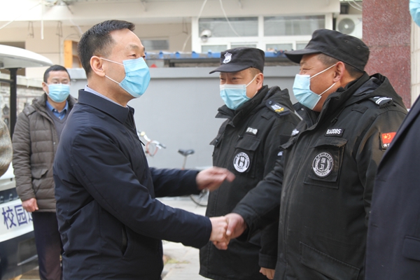 雷西合副書記、蘇文甫副校長與值班人員親切交談,詳細了解了各部門的假期工作狀況,并代表學(xué)校對在疫情防控期間堅守崗位一線的教職工表示新年的慰問與祝福,對一線教職工的辛勤付出表示感謝。雷西合副書記、蘇文甫副校長談到,在疫情防控期間,正是有了一線教職工在假期堅守崗位任勞任怨地奉獻,才為我們換來了平安穩(wěn)定的校園環(huán)境;要始終把一線教職工的安危冷暖掛在心上、抓在手上,把學(xué)校的關(guān)懷送到一線教職工身邊,確保他們度過一個溫暖祥和的新春佳節(jié)。