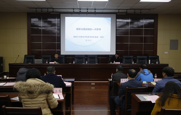 在學(xué)術(shù)研討環(huán)節(jié),國(guó)防大學(xué)政治學(xué)院西安校區(qū)李保忠教授、陜西工運(yùn)學(xué)院薛丁齊教授、西北工業(yè)大學(xué)馬克思主義學(xué)院郝保權(quán)教授、西安電子科技大學(xué)馬克思主義學(xué)院賈鋼濤教授、西安石油大學(xué)馬克思主義學(xué)院郭艷英副教授圍繞“國(guó)家治理戰(zhàn)略的一點(diǎn)思考”“從蘇共興亡的歷史教訓(xùn)看‘旗幟鮮明講政治’”“國(guó)家治理現(xiàn)代化進(jìn)程中民主集中制優(yōu)化”“準(zhǔn)確識(shí)變 科學(xué)應(yīng)變 主動(dòng)求變”“深刻認(rèn)識(shí)百年未有之大變局”等專題作了精彩的主旨報(bào)告。西安電子科技大學(xué)馬克思主義學(xué)院劉建偉教授和西安電子科技大學(xué)研究生王穎作為獲獎(jiǎng)?wù)撐淖髡叽戆l(fā)言。