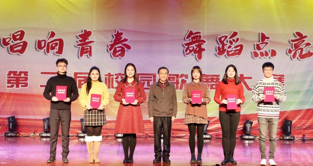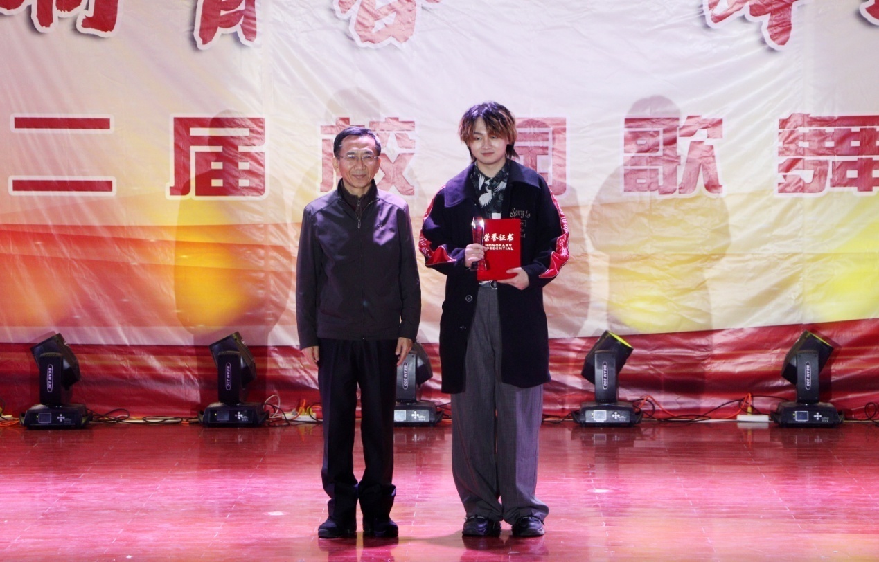 最終,經(jīng)過激烈角逐,《給你一點顏色》獲歌曲組一等獎,《New York New York》《黑貓警長》獲歌曲組二等獎,《鴻雁》《故鄉(xiāng)山川》《易燃易爆炸》獲歌曲組三等獎,《少年錦時》《古風(fēng)歌曲串燒》《錯》《飛云之下》獲歌曲組優(yōu)秀獎;強波蓉、萊麗古麗·伊立哈木獲舞蹈組一等獎,胡容榕、卡比熱阿·比那爾別克獲舞蹈組二等獎,孜拉來·阿不地力木、娜迪熱·阿樸杜外力、邵鏝毅獲舞蹈組三等獎,沈安媞、王一平、王馨蔚、楊怡飛、李蔚然獲舞蹈組優(yōu)秀獎;古蘭、邱迪、范嘉欣、張靚、沈軒羽、史陽獲優(yōu)秀導(dǎo)師獎。張木副書記為獲獎師生頒獎。