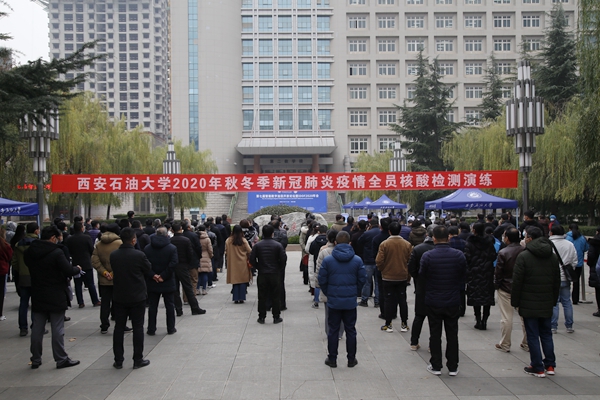 1127日下午,我校在雁塔校區(qū)忠實(shí)廣場舉行了2020年秋冬季新冠肺炎疫情全員核酸檢測演練活動(dòng),教職工代表和學(xué)生代表共約200人參加了演練,副校長蘇文甫主持演練活動(dòng)。