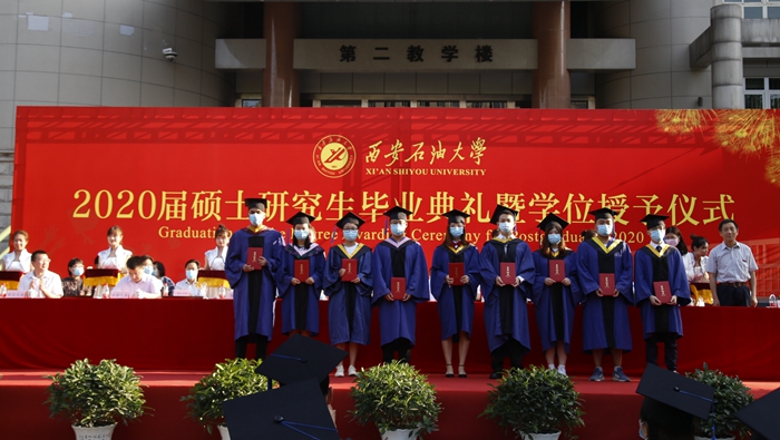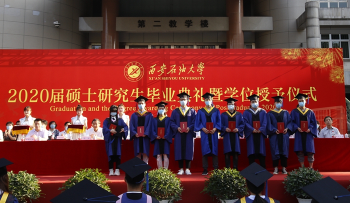 副校長李華宣讀了學(xué)?!段靼彩痛髮W(xué)關(guān)于授予常耀恒等918名研究生碩士的決定》《西安石油大學(xué)關(guān)于表彰2020年優(yōu)秀碩士學(xué)位論文作者及指導(dǎo)教師的決定》。校黨委副書記張木宣讀了學(xué)?!段靼彩痛髮W(xué)關(guān)于表彰2020屆優(yōu)秀畢業(yè)生的決定》《西安石油大學(xué)校友總會關(guān)于聘任2020屆年級校友理事的決定》。校領(lǐng)導(dǎo)為優(yōu)秀畢業(yè)生、校友理事代表頒發(fā)證書、聘書。