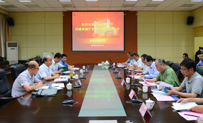 劉建林副廳長指出,西安石油大學(xué)“十三五”期間按照建設(shè)特色鮮明的高水平教學(xué)研究型大學(xué)的目標(biāo),緊緊圍繞學(xué)校中心工作,聚精會神搞建設(shè),改革創(chuàng)新謀發(fā)展,重點突破,成績顯著。同時就學(xué)校改革建設(shè)發(fā)展過程中遇到的難點和困難,同與會領(lǐng)導(dǎo)進行了深入分析與研究,表示省教育廳將給予學(xué)校一如既往的支持和關(guān)心。他強調(diào),西安石油大學(xué)作為西北地區(qū)惟一一所以石油石化為特色的多科性大學(xué)和陜西省高水平大學(xué)建設(shè)院校,要發(fā)揚優(yōu)良傳統(tǒng),保持良好發(fā)展勢頭,著力做好以下工作:一是繼續(xù)堅持立德樹人的根本任務(wù)不放松,不斷提高人才培養(yǎng)質(zhì)量;二是聚焦辦學(xué)有特色、發(fā)展有優(yōu)勢、工作有亮點三項要求,穩(wěn)步推進學(xué)校高質(zhì)量發(fā)展;三是立足辦學(xué)定位,圍繞核心指標(biāo),促進學(xué)校內(nèi)涵建設(shè),不斷提升學(xué)校的核心競爭力;四是扎實做好“六穩(wěn)”工作、落實“六?!比蝿?wù)工作要求,全力做好大學(xué)生就業(yè)工作;五是發(fā)揮學(xué)校石油石化特色優(yōu)勢,加強國際交流與合作,積極與“一帶一路”沿線國家圍繞能源領(lǐng)域開展科學(xué)研究、人才培養(yǎng)等合作;六是加大高層次人才的引進和培育力度,進一步提高學(xué)校二、三級教授比例,為學(xué)校發(fā)展提供人才保障;七是學(xué)校要圍繞人才培養(yǎng)規(guī)律、學(xué)校辦學(xué)定位、提高利用率三個方面,明確三校區(qū)功能定位,優(yōu)化學(xué)校運行機制;八是大力推進學(xué)校后勤社會化改革,切實提高服務(wù)師生的意識和能力水平;九是毫不放松地抓緊抓實疫情常態(tài)化防控工作,始終將師生的生命安全和身體健康放在第一位,切實維護校園安全穩(wěn)定。