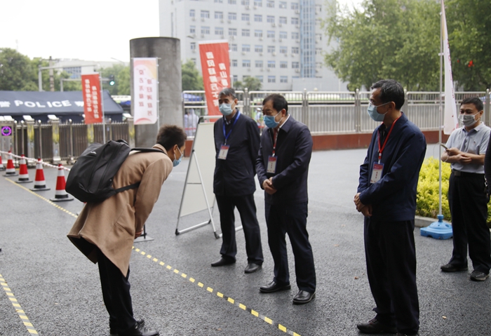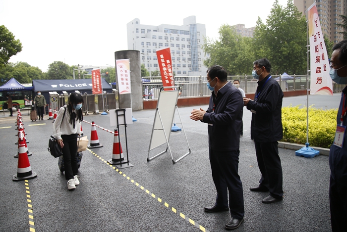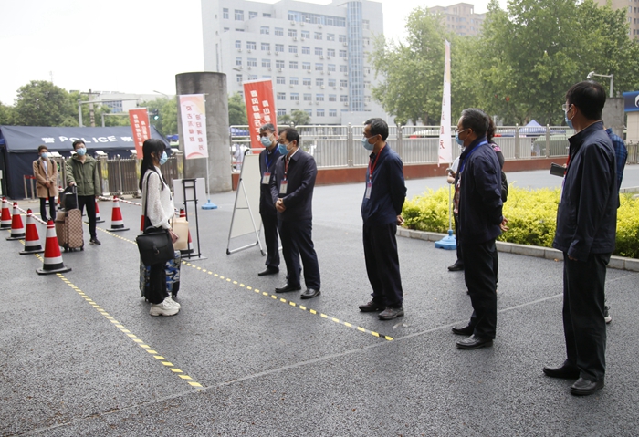 57日上午9時,首位返校學(xué)生、經(jīng)濟管理學(xué)院研究生劉雪夢順利抵達學(xué)校。在現(xiàn)場工作人員的指引下,劉雪夢依次完成了更換口罩、測量體溫、行李和手部消毒、核查健康碼(綠碼)、身份核實等流程后順利進入校園。校黨政領(lǐng)導(dǎo)賽云秀、李天太、張木、李華、蘇文甫、程永清先后到報到區(qū)迎接返校同學(xué),校領(lǐng)導(dǎo)與同學(xué)們親切交談,對返校同學(xué)表示歡迎,深入了解大家的思想狀況、身體狀況、假期學(xué)習(xí)生活、論文撰寫情況、就業(yè)情況。校領(lǐng)導(dǎo)鼓勵同學(xué)們堅定戰(zhàn)勝疫情的信心,嚴格落實學(xué)校、學(xué)院各項疫情防控措施,同時要珍惜最后的校園時光,順利完成學(xué)業(yè)任務(wù)。