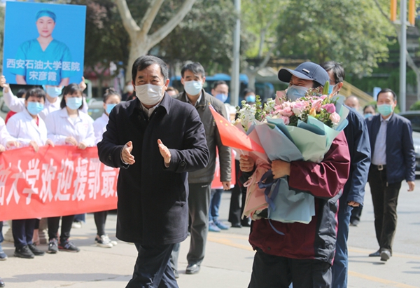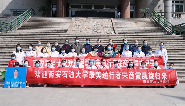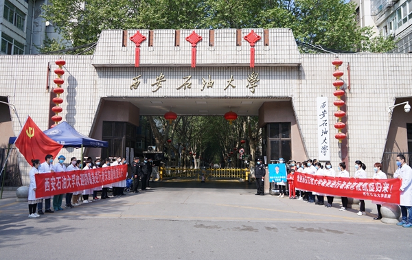 宋彥霞護(hù)士將一面帶到武漢的校旗回贈給學(xué)校,這面校旗將珍藏在學(xué)校檔案館。她說:“感謝學(xué)校在我身處一線抗疫的時候,從精神上、物質(zhì)上給予的無微不至的關(guān)懷。正是有了學(xué)校這個堅強(qiáng)后盾,我才能輕裝上陣、奮戰(zhàn)一線,我為自己是西安石油大學(xué)的一員感到自豪!”