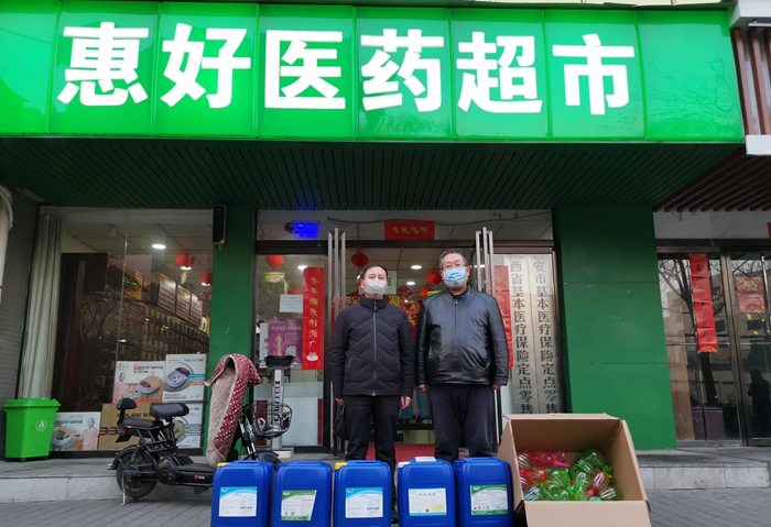 2月4日,西安惠好醫(yī)藥有限公司總經(jīng)理喬元平向我校捐贈了醫(yī)療防控物資。這批物資包括酒精20公斤、過氧乙酸50公斤、84消毒液50公斤、體溫計10支、測溫槍2支、噴壺43個,將全部用于學(xué)校疫情防控第一線。這批物資是我校接受的首批社會愛心捐贈,對于西安惠好醫(yī)藥有限公司總經(jīng)理喬元平的善舉,國有資產(chǎn)處處長侯琦表達(dá)了誠摯的感謝。