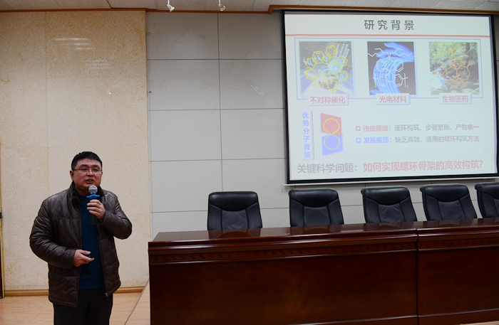 成立儀式結(jié)束后,與會專家就《抽油機減速器半流體潤滑劑產(chǎn)品標(biāo)準(zhǔn)》進行了審定。同時會議還邀請西北大學(xué)化學(xué)與材料學(xué)院院長、國家杰出青年基金獲得者欒新軍教授作了題為“螺環(huán)構(gòu)筑的新策略與新方法”的報告,我校師生代表120余人現(xiàn)場聆聽。