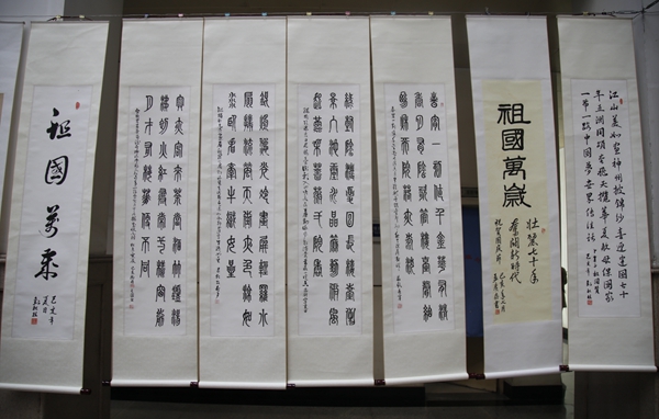 此次展覽匯集了我校10余名書畫愛好者精心創(chuàng)作的60余幅書畫作品。創(chuàng)作者以手中的畫筆熱情贊頌偉大祖國(guó)的光輝成就,真情書寫新中國(guó)成立70年的偉大歷程。觀眾也被一幅幅精美的書畫作品深深吸引,一起祝福偉大祖國(guó)繁榮昌盛。