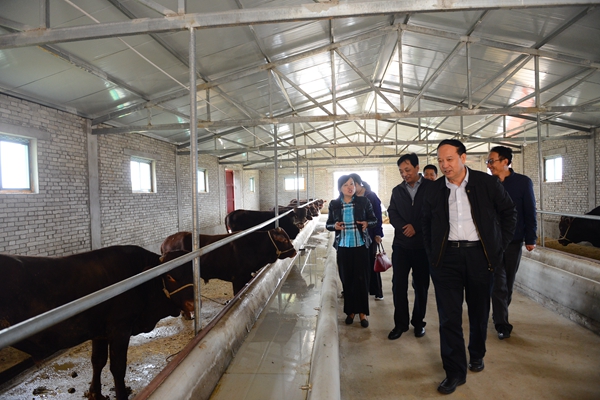 座談會后,賽書記一行實地考察了學(xué)校幫扶堅固村建設(shè)的養(yǎng)牛場,仔細查看了養(yǎng)牛設(shè)施和飼養(yǎng)情況,對進一步擴大飼養(yǎng)規(guī)模、提高出欄率提出了建議。同時還考察了堅固村農(nóng)產(chǎn)品加工廠,并對提高農(nóng)產(chǎn)品加工質(zhì)量、擴大銷售提出了針對性措施。