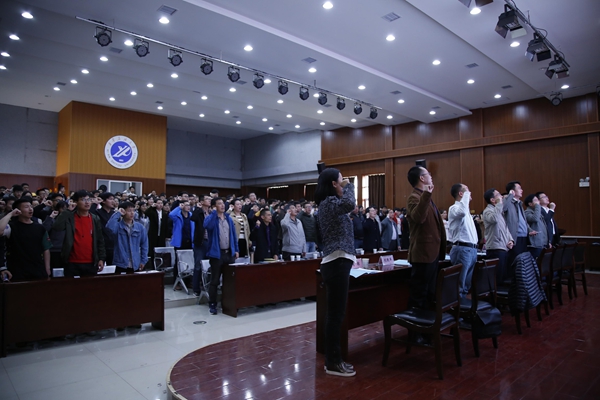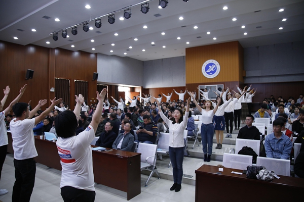 全體參會(huì)師生進(jìn)行了第四屆“陽光護(hù)航”宣傳季活動(dòng)宣誓。應(yīng)用心理學(xué)輔修專業(yè)同學(xué)表演了配樂詩朗誦《如果你愛我》,師生共同演繹了手語舞《讓愛傳出去》。