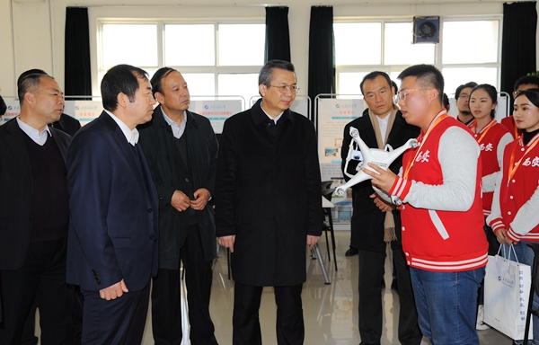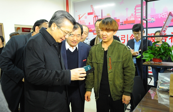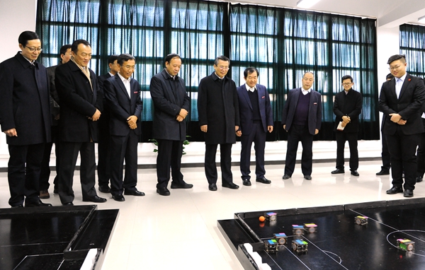 王永康首先來到我校工程訓(xùn)練中心,先后參觀了石油科技創(chuàng)新成果館、足球機(jī)器人創(chuàng)新實踐基地、機(jī)械創(chuàng)新創(chuàng)業(yè)基地、大學(xué)生文化創(chuàng)新創(chuàng)業(yè)工坊、眾創(chuàng)加油站等,認(rèn)真聽取了我校創(chuàng)新創(chuàng)業(yè)成果和作品介紹,詳細(xì)了解學(xué)??萍汲晒D(zhuǎn)化、創(chuàng)新創(chuàng)業(yè)情況,他對我校創(chuàng)新創(chuàng)業(yè)成果表示肯定,稱贊學(xué)校創(chuàng)新創(chuàng)業(yè)的氛圍濃、創(chuàng)新創(chuàng)業(yè)的成果多、創(chuàng)新創(chuàng)業(yè)人才多,在科研、創(chuàng)新、創(chuàng)業(yè)等方面很有特色,做得很好;并與現(xiàn)場師生親切交流,鼓勵大家繼續(xù)努力,把創(chuàng)新創(chuàng)業(yè)做得更好。