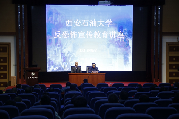 薛曉軍警官?gòu)摹胺纯植莱WR(shí)”“當(dāng)前反恐怖斗爭(zhēng)形勢(shì)與策略”“高校如何開展反恐怖工作”三個(gè)方面進(jìn)行宣講。講座就近年來國(guó)內(nèi)外出現(xiàn)極端宗教勢(shì)力破壞國(guó)家穩(wěn)定安全、國(guó)際國(guó)內(nèi)反恐形勢(shì)、高校反恐重點(diǎn)和日常管控要點(diǎn)等方面作了詳細(xì)講解,對(duì)下一步學(xué)校及相關(guān)職能部門提高反恐防恐意識(shí)、正確把握政策、落實(shí)反恐維穩(wěn)工作、維護(hù)校園穩(wěn)定安全起到了積極意義。