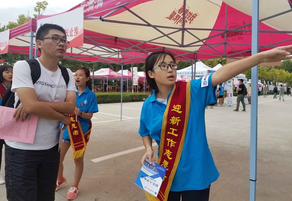 校團(tuán)委主要負(fù)責(zé)青年志愿者服務(wù)工作。從前期場(chǎng)地布置等準(zhǔn)備工作到新生報(bào)到期間,校團(tuán)委共組織青年志愿者600余人次,為整個(gè)迎新工作提供了有力的服務(wù)保障。
