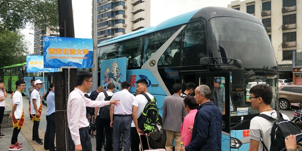 后勤管理處主要負(fù)責(zé)組織車輛從西安火車站接送新生及家長(zhǎng)到鄠邑校區(qū)。6日清晨六點(diǎn),在后勤管理處副處長(zhǎng)秦光義的帶領(lǐng)下,在西安火車站的迎新工作已拉開序幕。接站組的工作人員用親切的微笑、熱誠(chéng)的服務(wù)讓來(lái)自五湖四海的新生及家長(zhǎng)對(duì)西石大留下了美好的第一印象。工作人員及學(xué)生志愿者幫助剛到站的新生及家長(zhǎng)提行李、搬物品,耐心解答新生及家長(zhǎng)的提問,一趟又一趟穿梭于接站點(diǎn)和班車之間。
