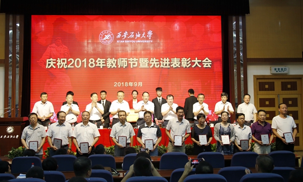會上,校黨委書記賽云秀宣讀了《西安石油大學(xué)關(guān)于表彰獎勵“教書育人30年”教師的決定》和榮獲2018年陜西省師德建設(shè)先進(jìn)集體和師德先進(jìn)個人名單;紀(jì)委書記李延平宣讀了榮獲2017年省部級科技成果獎勵項目名單和2018年“陜西省教學(xué)名師”教師名單;校黨委副書記張木宣讀了榮獲2017年陜西省高等教育教學(xué)成果獎獲獎名單和2017年中國石油教育學(xué)會高等教育教學(xué)成果獎獲獎名單;校黨委副書記雷西合宣讀了《中共陜西省委高教工委關(guān)于表彰全省高校先進(jìn)基層黨組織、優(yōu)秀共產(chǎn)黨員和優(yōu)秀黨務(wù)工作者的決定》;副校長楊戰(zhàn)社宣讀榮獲2017年陜西省“特支計劃”教師名單;副校長陳軍斌宣讀了榮獲2017年“全國高校思想政治理論課教學(xué)骨干”稱號教師名單、陜西高等學(xué)校第四屆青年教師教學(xué)競賽獲獎名單和《中共西安石油大學(xué)委員會關(guān)于表彰先進(jìn)黨組織、優(yōu)秀黨務(wù)工作者、優(yōu)秀黨支部書記和優(yōu)秀共產(chǎn)黨員的決定》;副校長李華宣讀了《中共西安石油大學(xué)委員會、西安石油大學(xué)關(guān)于表彰2018年優(yōu)秀教師、先進(jìn)教育工作者的決定》和《中共西安石油大學(xué)委員會、西安石油大學(xué)關(guān)于表彰2018年師德建設(shè)先進(jìn)集體和師德先進(jìn)個人的決定》;“弘石”基金委員會副理事長何力宣讀了2017年度“弘石基金獎”獲獎教師名單。校領(lǐng)導(dǎo)為受表彰的先進(jìn)集體和個人頒獎。