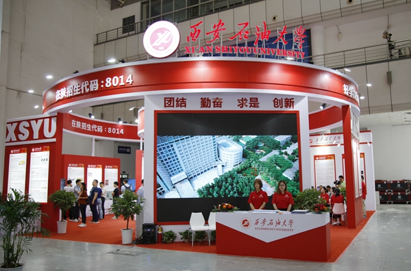 我校展區(qū)位于曲江國(guó)際會(huì)展中心核心展區(qū)A館,共有37項(xiàng)科研成果、15項(xiàng)研究生創(chuàng)新成果參展。展臺(tái)設(shè)計(jì)采用彩色圖文展板、科研成果實(shí)物展品、LED顯示、宣傳彩頁(yè)等多種形式,全方位展示了我校文化建設(shè)成果、教育扶貧成果、“互聯(lián)網(wǎng)+”大學(xué)生創(chuàng)新創(chuàng)業(yè)成果、科技成果及研究生創(chuàng)新成果,并著重突出了石油石化特色。為做好參展工作,由教務(wù)處牽頭,科技處、研究生院及相關(guān)職能處室通力合作、積極準(zhǔn)備,按時(shí)提交資料,確保各項(xiàng)成果順利展出。各院(系)教師代表、招生辦公室工作人員、學(xué)生志愿者經(jīng)過(guò)認(rèn)真地培訓(xùn)學(xué)習(xí),在展會(huì)上為廣大家長(zhǎng)、學(xué)生提供了完善細(xì)致的信息咨詢(xún)服務(wù)。