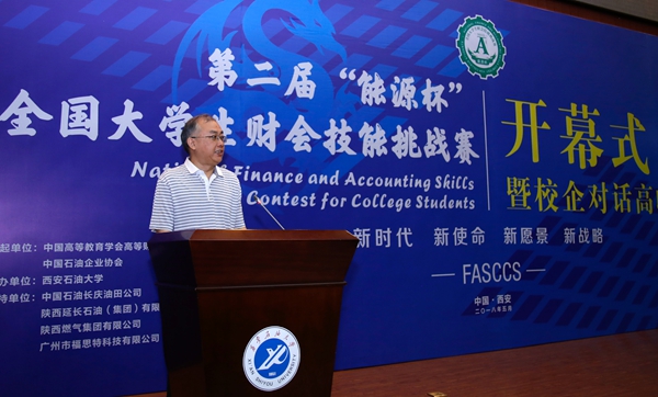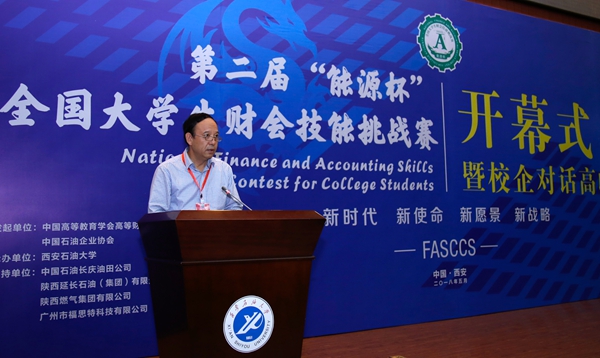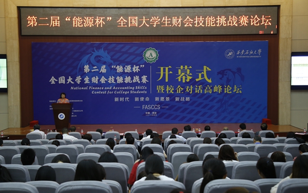 校長屈展在致辭中對工作人員長達(dá)半年的精心籌備和組織表示感謝,對參賽參會人員表示歡迎。他指出,大賽是貫徹落實(shí)國家中長期教育改革和發(fā)展規(guī)劃綱要,以及高等學(xué)?!笆濉笨茖W(xué)和技術(shù)發(fā)展規(guī)劃精神所發(fā)起的大學(xué)生競賽活動,對于財(cái)會人才培養(yǎng)具有積極意義,并宣布第二屆“能源杯”全國大學(xué)生財(cái)會技能挑戰(zhàn)賽正式開賽。