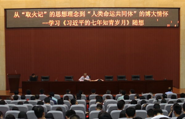 5月3日下午,學校邀請陜西省作家協(xié)會主席團顧問曹谷溪先生來校作了題為《從“取火記”的思想理念到“人類命運共同體”的博大情懷——學習< 習近平的七年知青歲月>隨想》的專題報告。全體學工干部和學生代表400余人聆聽了報告。