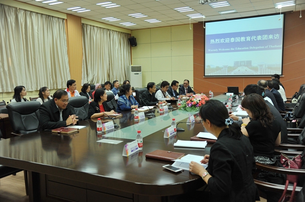 19日下午,雙方在我校雁塔校區(qū)會(huì)議中心第一會(huì)議室召開(kāi)合作座談會(huì),陳軍斌副校長(zhǎng)主持。國(guó)際教育學(xué)院負(fù)責(zé)人介紹了我校的國(guó)際化發(fā)展及國(guó)際教育情況。隨后,雙方著重就在泰共建國(guó)際教育基地、來(lái)華留學(xué)專業(yè)需求、本科及研究生培養(yǎng)情況、漢語(yǔ)教學(xué)管理、教師交流、學(xué)生錄取等議題進(jìn)行了深入交流,并對(duì)下一步的合作達(dá)成了初步意向。