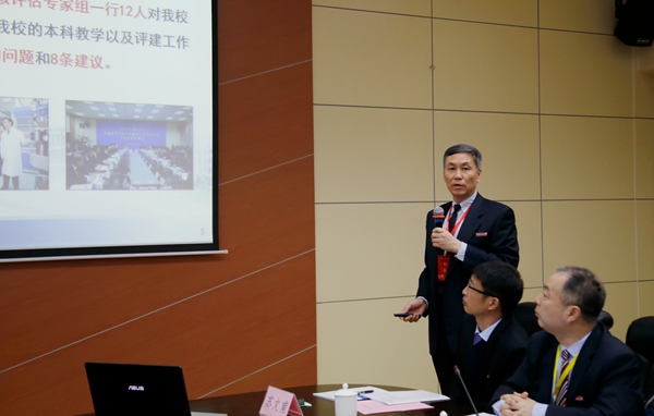 在聽取專家組的反饋意見后,屈展校長代表學(xué)校對專家組的辛勤工作和深入指導(dǎo)表示衷心感謝,并表示學(xué)校誠懇接受專家組的寶貴意見和建議。屈校長表示,學(xué)校下一步將從三個(gè)方面著手,推動學(xué)校本科教學(xué)工作再上新臺階:一是進(jìn)一步完善整改工作機(jī)制,持續(xù)推進(jìn)本科教學(xué)整改工作。二是進(jìn)一步深化教學(xué)改革,提升教育教學(xué)質(zhì)量。三是牢固樹立本科教學(xué)中心地位,全面提升人才培養(yǎng)質(zhì)量。