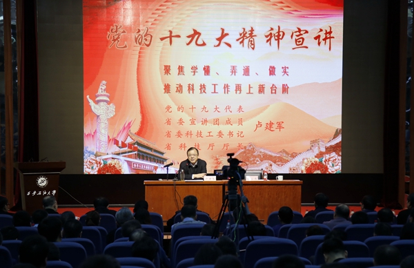 省科技廳廳長(zhǎng)盧建軍為我校作黨的十九大精神專題輔導(dǎo)報(bào)告