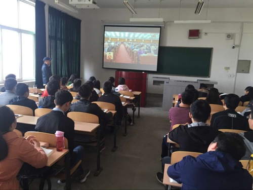 3.召開會議深入學。學院要求各教工、學生黨支部分別召開專題會議,對原文詳細品讀,系統(tǒng)性地學習黨的十九大精神。同時,在全體學生范圍內召開“從‘新’開始學黨的十九大精神,牢記使命做大時代先鋒”主題團日活動,確保黨的十九大精神覆蓋到每位教職工、每位同學。