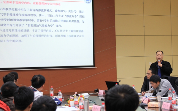 石油工業(yè)出版社高教分社社長徐秀澎介紹了此次研討會的組織過程。其他石油高校“滲流力學(xué)”課程負(fù)責(zé)人介紹了本?!皾B流力學(xué)”課程建設(shè)方面的相關(guān)經(jīng)驗。大家圍繞“滲流力學(xué)”課程建設(shè)的已有做法、未來規(guī)劃及存在問題進行了充分交流。