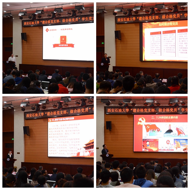在黨的十九大勝利召開之際,為加強黨支部書記工作交流,落實“三會一課”制度,推進“兩學一做”學習教育常態(tài)化制度化,10月23日、10月24日晚,我校分別在雁塔校區(qū)學術報告廳和鄠邑校區(qū)就業(yè)指導中心多功能廳成功舉辦了“建合格黨支部、做合格黨員”教工黨支部書記和學生黨支部書記講黨課比賽。校黨委副書記雷西合出席大賽并講話。校黨委各部(辦)、院(系)級單位黨組織部分負責人和馬克思主義學院教師代表擔任比賽評委。各院(系)級單位黨組織書記、副書記,全校各黨支部書記及委員和黨員代表觀摩了本次比賽。