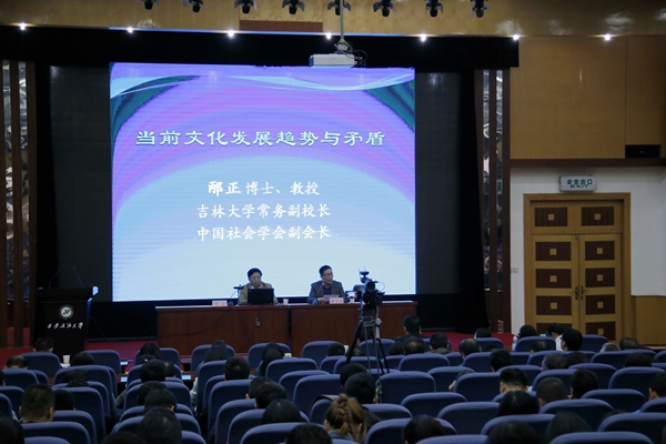 10月18日下午,吉林大學(xué)常務(wù)副校長、博士生導(dǎo)師,中國社會學(xué)會副會長邴正教授應(yīng)我校邀請,在雁塔校區(qū)學(xué)術(shù)報告廳為我校師生作了題為《當(dāng)代文化發(fā)展趨勢與矛盾》的學(xué)術(shù)報告。學(xué)校處、科級干部,人文學(xué)院、馬克思主義學(xué)院教師,研究生代表近300人參加了報告會。報告會由校黨委副書記雷西合主持。