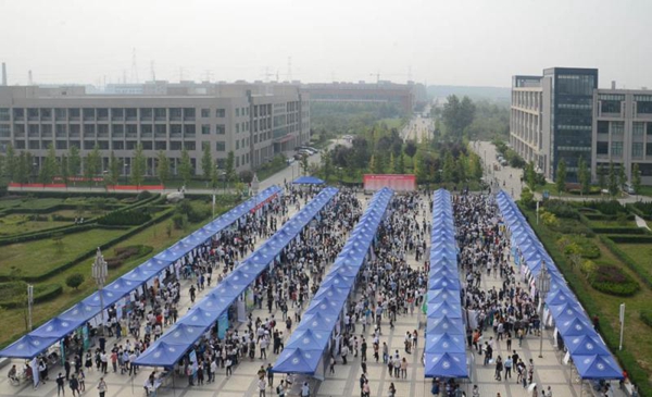 9月23日,我校2018屆畢業(yè)生首場大型綜合招聘會在鄠邑校區(qū)圖書館南廣場舉行。江蘇盛虹集團公司、中國石油天然氣第七建設(shè)有限公司、中國核工業(yè)二三建設(shè)有限公司等近200家單位、300余名代表參會,我校及兄弟院校畢業(yè)生共計4000余人參加了招聘會。