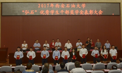 會上,合作發(fā)展處處長蔡上游介紹了弘石基金設立的相關情況。弘石基金委員會委員、機械工程學院徐建寧教授宣讀了《西安石油大學2017年度“弘石”基金委員會表彰決定》,大會對30名優(yōu)秀學生干部進行了表彰。