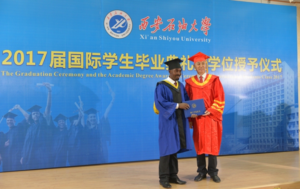 儀式上,教務(wù)處副處長張君濤、研究生院副院長屈文濤分別宣讀了獲得學(xué)士學(xué)位、碩士學(xué)位的國際學(xué)生名單。國際交流與合作處處長張榮軍、國際教育學(xué)院(絲路能源學(xué)院)院長董皓分別為2017屆優(yōu)秀國際學(xué)生畢業(yè)生、國際校友理事頒發(fā)了證書和聘書。