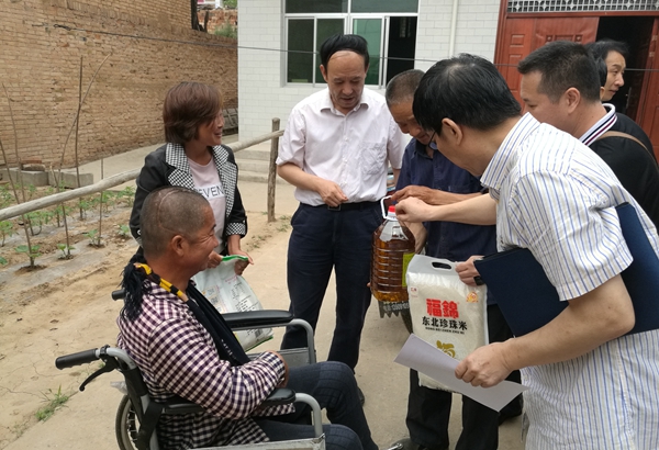 學(xué)校黨政辦、宣傳部、校工會負(fù)責(zé)人,學(xué)校扶貧工作隊、堅固村干部陪同走訪慰問。