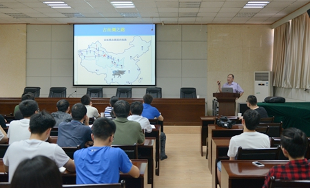 張洪泉教授在報告中與師生分享了他持續(xù)關注并潛心研究的羅布泊對氣候和生態(tài)影響的研究成果,提出了近50年來中國西北戈壁灘周圍生態(tài)環(huán)境惡化是由于羅布泊的消失以及塔里木盆地內水體持續(xù)西移造成的觀點。他運用大量實例、數(shù)據(jù),闡述了羅布泊從古至今環(huán)境變遷的原因和機理,并提出了恢復羅布泊、改善大西北生態(tài)環(huán)境的具體方案。張洪泉教授認真嚴謹?shù)目蒲芯瘛⒄劰耪摻竦闹v授風格,贏得了我校師生的一致好評。