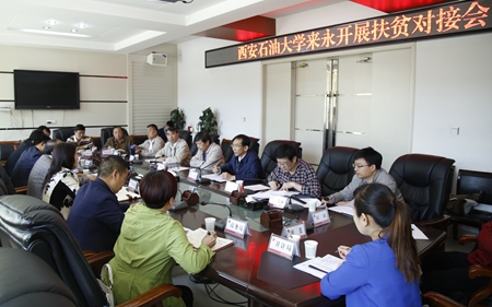 張木副書記、楊戰(zhàn)社副校長一行首先到永壽縣人民政府參加了??h結(jié)對幫扶對接座談會。縣委常委、副縣長樊莉霞主持座談會,她對學校長期以來心系基層、關(guān)心貧困群眾的舉措和對接調(diào)研組的到來表示熱烈的歡迎和感謝,并詳細介紹了永壽縣委、縣政府開展扶貧脫貧工作的情況。