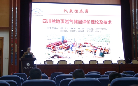 報(bào)告中,周文教授緊密圍繞近年來在四川盆地頁巖氣儲層評價理論與技術(shù)領(lǐng)域的主要創(chuàng)新性成果展開講解。他通過海量數(shù)據(jù)分析引出具體科學(xué)問題,再用嚴(yán)謹(jǐn)求實(shí)的科學(xué)態(tài)度與在場師生共同分享了科研團(tuán)隊(duì)經(jīng)過長期攻關(guān)研究,所建立的頁巖氣儲層孔隙構(gòu)造表征理論模型、有機(jī)孔隙與熱演化程度的關(guān)系、頁巖氣微孔隙中氣-水分布理論模型,提出了“排烴作用”差異是制約奧陶-志留系五峰-龍馬溪與寒武系笻竹寺組/牛蹄塘組含氣性差異的關(guān)鍵因素;建立了“基于電子顯微圖像的頁巖氣儲層微-納米級孔隙參數(shù)統(tǒng)計(jì)技術(shù)”和“基于孔徑界線的頁巖氣儲層-納米孔隙體系孔結(jié)構(gòu)的定量表征技術(shù)”。周教授的報(bào)告內(nèi)容豐富詳實(shí)、圖文并茂、形象直觀,使在場聽眾受益良多。