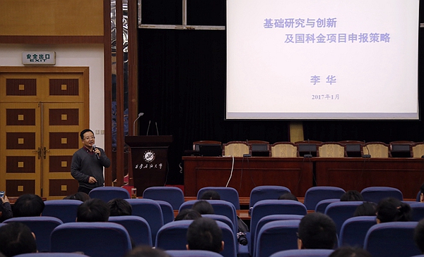 李華副校長(zhǎng)為大家作了題為《基礎(chǔ)研究與創(chuàng)新及國(guó)家科學(xué)基金申報(bào)策略》的專題報(bào)告。他結(jié)合自己的科研經(jīng)歷和擔(dān)任自然科學(xué)基金項(xiàng)目評(píng)審專家的經(jīng)驗(yàn),耐心細(xì)致地講解了國(guó)家科學(xué)基金項(xiàng)目的類型、資助情況、申請(qǐng)書撰寫技巧、專家評(píng)議標(biāo)準(zhǔn),以及2017年度國(guó)家基金委工作部署情況等,強(qiáng)調(diào)在基金申報(bào)時(shí)要聚焦基礎(chǔ)和學(xué)科前沿問(wèn)題,扎實(shí)認(rèn)真地做好具體工作。他鼓勵(lì)廣大教師在申報(bào)國(guó)家科學(xué)基金的過(guò)程中,要樹立信心,堅(jiān)持不懈,克服畏難心理,深入挖掘自身潛力,提升申報(bào)質(zhì)量;要針對(duì)重點(diǎn)學(xué)科和領(lǐng)域集中申報(bào),力爭(zhēng)在2017年度國(guó)家科學(xué)基金申報(bào)中取得佳績(jī)。李華副校長(zhǎng)的報(bào)告內(nèi)容豐富、生動(dòng)精彩,報(bào)告結(jié)束后他還解答了大家提出的各種問(wèn)題。