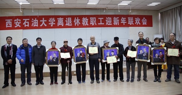 蘇文甫副校長代表學(xué)校致辭。他首先向廣大離退休職工致以新年問候,向他們?yōu)閷W(xué)校的建設(shè)發(fā)展做出的貢獻(xiàn)致以崇高敬意。他通報(bào)了學(xué)校2016年的重點(diǎn)工作,充分肯定了廣大離退休教職工心系學(xué)校發(fā)展、胸懷學(xué)校大局、努力發(fā)揮余熱,為學(xué)校的改革發(fā)展穩(wěn)定做出的貢獻(xiàn),希望離退休職工管理處繼續(xù)加強(qiáng)離退休職工的管理服務(wù)工作,努力讓老同志老有所為、老有所學(xué)、老有所樂。隨后,離退休處為5對(duì)金婚夫婦舉辦了熱烈祥和的金婚慶典,蘇文甫副校長為金婚夫婦頒發(fā)了金婚證書、紀(jì)念品和紀(jì)念照。