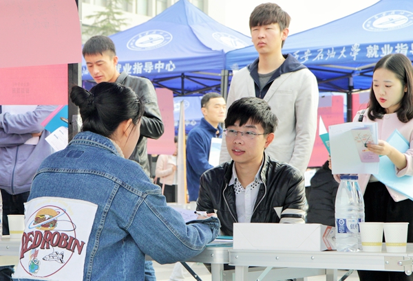 全體就業(yè)工作干部深入招聘會(huì)現(xiàn)場(chǎng),積極向用人單位代表介紹我校專業(yè)設(shè)置及人才培養(yǎng)特色,溝通了解企業(yè)發(fā)展及人才需求情況,點(diǎn)對(duì)點(diǎn)地推薦畢業(yè)生和指導(dǎo)學(xué)生簽約。此次綜合招聘會(huì)是針對(duì)2017屆畢業(yè)生的第二場(chǎng)大型招聘會(huì),共計(jì)提供就業(yè)崗位4000余個(gè),需求專業(yè)涉及石油石化、機(jī)械電子、計(jì)算機(jī)、經(jīng)管、外語(yǔ)、藝術(shù)設(shè)計(jì)等40余個(gè)專業(yè)。