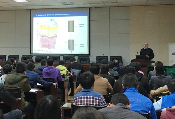 在校期間,Tayfun教授、金哲輝博士為我校師生作了學(xué)術(shù)報(bào)告。他們分別以“提高致密砂巖儲層原油采收率的研究”、“分子角度的頁巖介質(zhì)中流體相態(tài)及流動的熱動力學(xué)建模研究”、“What Should I Do Before I Graduate to Build a Strong Petroleum Engineering Career”為題,利用生動的圖表與豐富的數(shù)據(jù)展示了各自最新的研究成果,尤其就非常規(guī)地質(zhì)儲層的特征研究、儲層巖石力學(xué)性能分析、儲層流體微觀滲流機(jī)理、儲層改造技術(shù)與室內(nèi)實(shí)驗(yàn)研究等方面內(nèi)容進(jìn)行了詳細(xì)介紹,并在講座最后與我校師生進(jìn)行了交流。