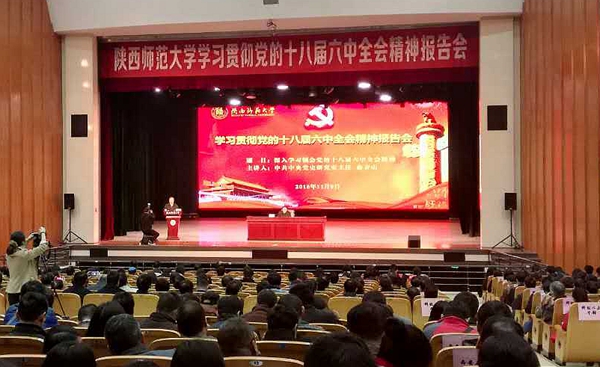 11月9日上午,校黨委組織全??萍?jí)以上領(lǐng)導(dǎo)干部和學(xué)生代表共150余人,赴陜西師范大學(xué)(長(zhǎng)安校區(qū))參加學(xué)習(xí)貫徹黨的十八屆六中全會(huì)精神報(bào)告會(huì)。報(bào)告會(huì)由十八屆六中全會(huì)精神中央宣講團(tuán)成員、中共中央黨史研究室主任曲青山擔(dān)任主講。